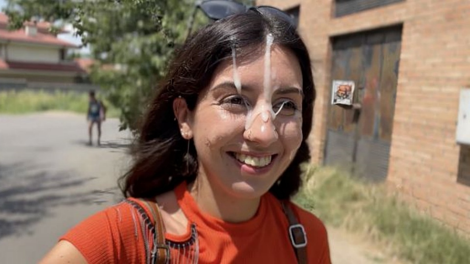 疯狂女孩在灌木丛里口交,颜射后在大庭广众之下行走